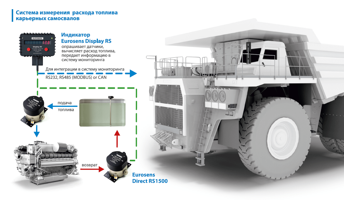 The Eurosens fuel consumption sensor system is used to accurately monitor the fuel consumption of BelAZ, Caterpillar and others.
